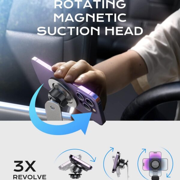 LISEN Vacuum Magnetic Phone Holder, 360° Rotatable Suction Cup Phone Holder Mount