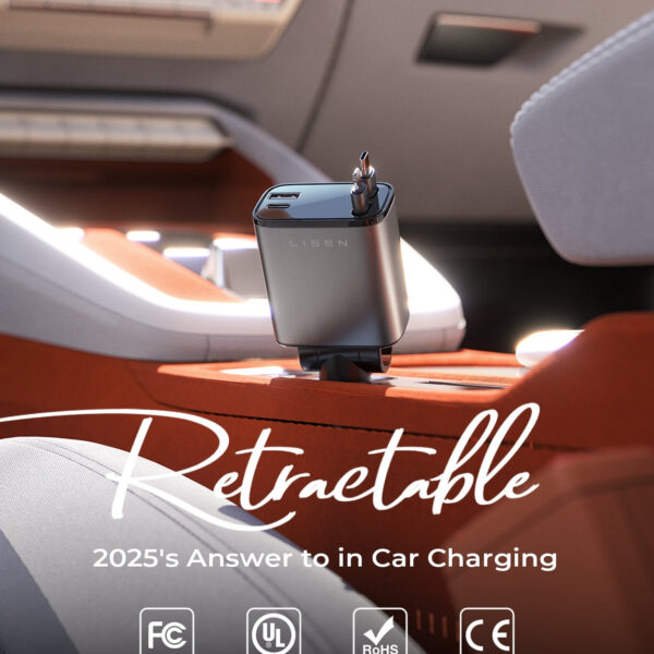 LISEN Retractable Car Charger, for Christmas Day Gifts for Men Women, 69W Cars Adapter USB C Fast Charger for iPhone 17, Car Accessories for Men Women Drivers, for iPhone 17 Pro Max Air 16 15 14 Plus